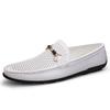 FashionHandmade White Men's Genuine Leather Loafers Wedding Party Men Shoes Luxury Elegant Dress Shoes for Men Breathable Mesh Flats