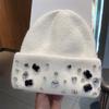 Autumn and Winter Knitted Hat Rhinestone Women's Casual Trendy Net Red Bowler Hat Warm Versatile Beanie Ear Hat