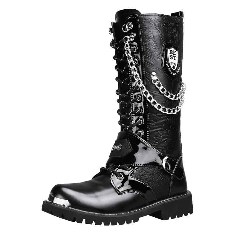 Fashion Motorcycle High Ankle Boots Men Casual Footwear High Top Punk Leather Boots for Men Winter Stylish Men Motorcycle Boot Big Size — buy online with free worldwide shipping!