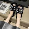 Fashion 2024 Winter New Women's Home Solid Color Flower Pearl Decorated Fluffy Furry Cotton Slippers