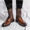 Ankle Boots for Men Brown Black Business Round Toe Lace-up Pu Mens Boots Size 38-48 Motorcycle Boots