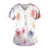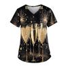 Women's Fashion New Year Printed Short Sleeve V-Neck Top Small Pocket Work T-Shirt