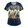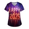 Women's Fashion New Year Printed Short Sleeve V-Neck Top Small Pocket Work T-Shirt — buy online with free worldwide shipping!