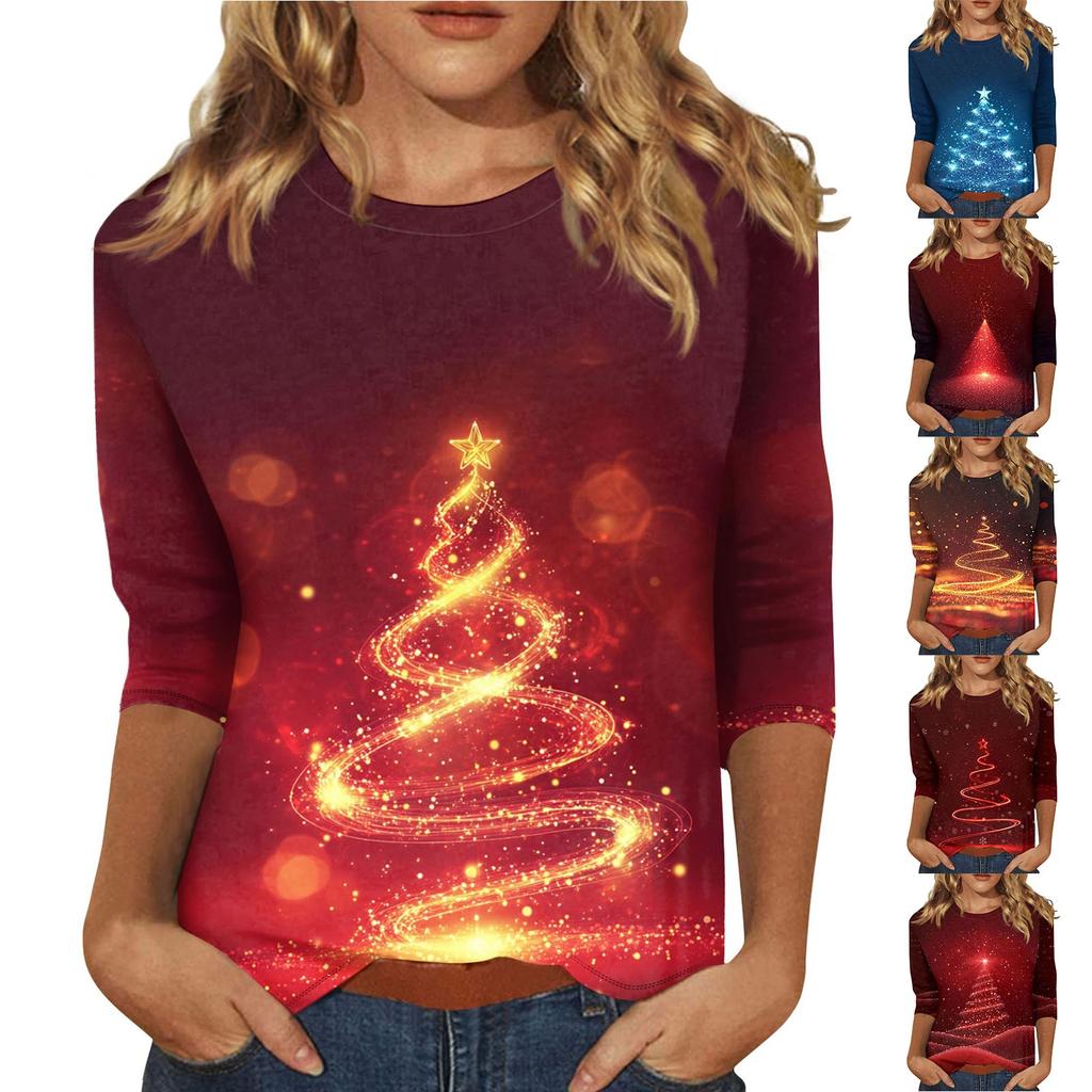 Women's O-Neck 3/4 Sleeve Christmas Print Top — buy online with free worldwide shipping!
