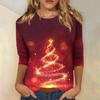 Women's O-Neck 3/4 Sleeve Christmas Print Top