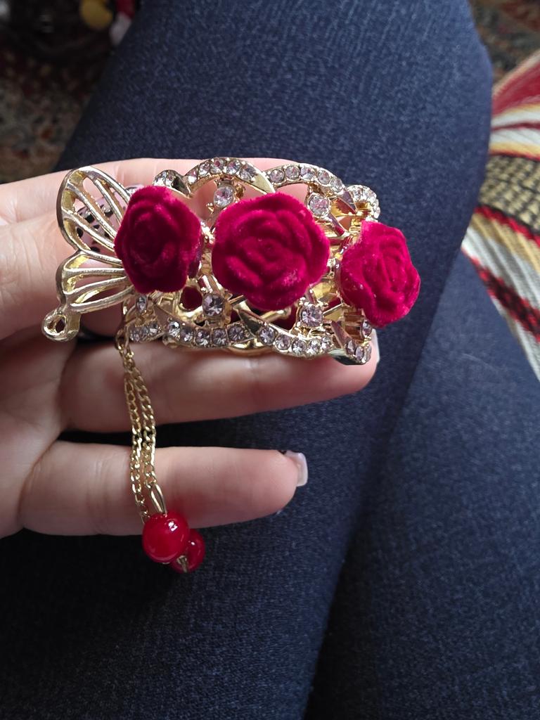 The hair clip is classy, very beautiful! It looks very delicate. Made as a crab clip, you can pin up a "ponytail", or cover a "bun" - however you like