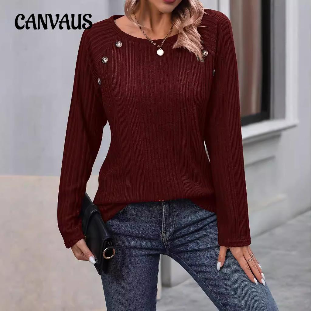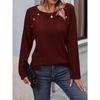 Autumn and Winter Women's Pit Stripe Milled Round Neck Solid Colour Button Long Sleeve Top — buy online with free worldwide shipping!