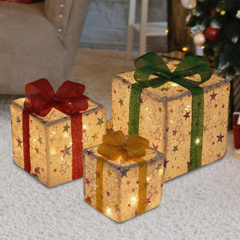 - 【Feature】: Light Up Christmas Decoration Gift Boxes with LED lights, easy to use without installation, suitable for indoor outdoor decorations, create a warm Christmas atmosphere in your home