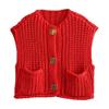 Women Sweater Vest V-neck Sleeveless Button Down Cardigan with Pockets Solid Color — buy online with free worldwide shipping!