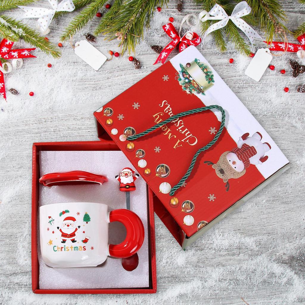 Christmas Mug Set Water Cup Lightweight Santa Cute Tea Coffee with Lid Spoon for Winter — buy online with free worldwide shipping!