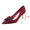 Fashion Green Silk Bowtie High Heels Pumps for Women Sexy Pointed Toe Metal Stiletto Heels Wedding Party Shoes Woman 2024 Spring — buy online with free worldwide shipping!