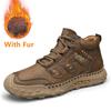 Vintage Style Men Hiking Shoes Fashion Walking Ankle Boots Comfortable Warm Winter Basic Boots Genuine Leather Male Casual Shoes