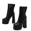 Fashion Chunky Platform Boots Women 2024 New High Heels Ankle Boots for Women Black Leather Square Toe Zipper Women Shoes Botas Mujer
