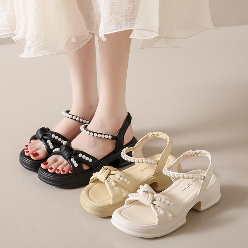 Fashion 2024 Summer New Fairy Style Thick Sole Sandals for Women Fashion Pearl Shoes Sandals Fashion Peep Toe Casual Dress Sandalies