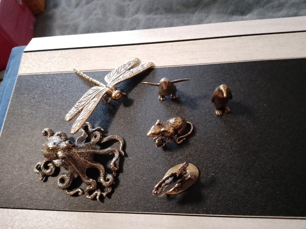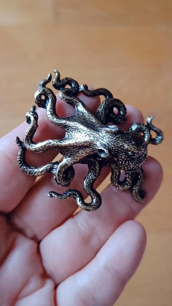 The octopus is not golden, but rather grey-brown. It is hollow inside. The shape is interesting. It looks quite interesting on the table!