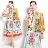 Spring Autumn Women Brand Designer Print Runway Dress Turn-down Collar Shirt Party Dresses With Belt