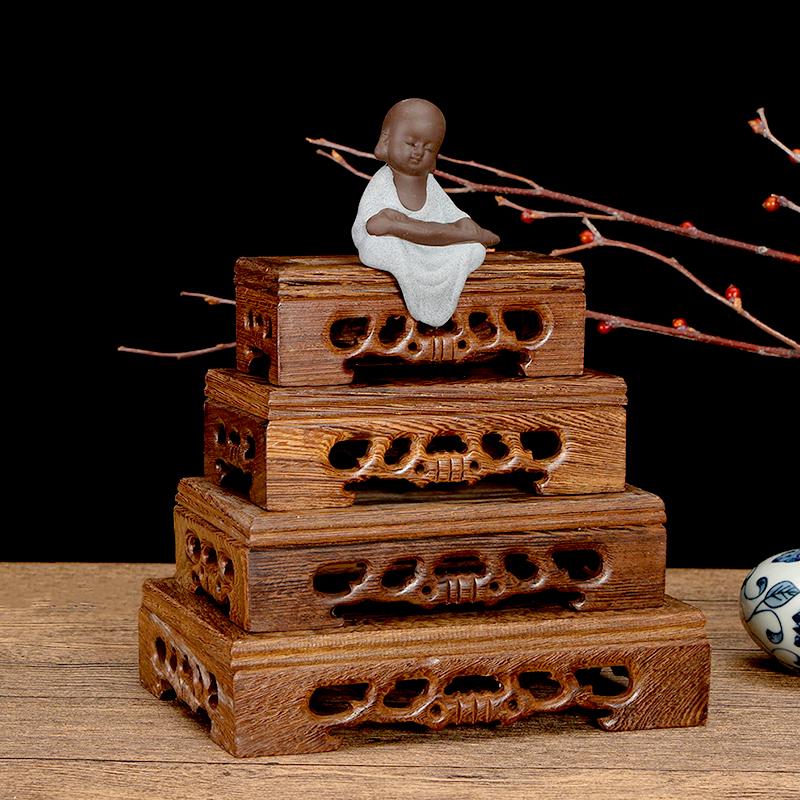 1pc Vintage-Style Storage Shelf Handmade Wood Teapot Stand Base Wooden Display Trays Miniatures Base