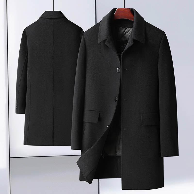 Men's Medium and Long Winter Business Lapel Solid Color Casual Removable Goose Down Liner Woolen Coat Men's Coat