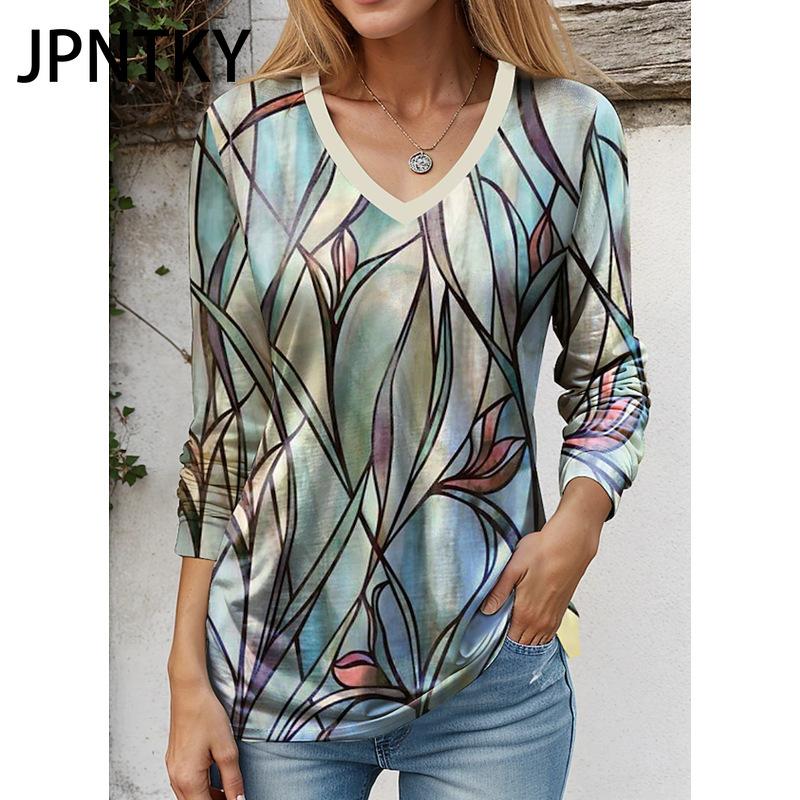 JPNTKY Women's Fashion Casual Autumn Winter Long Sleeve V-Neck Blouses & Shirts