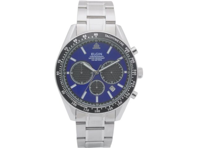 ELGIN Watch FK1401S-BL Men's Silver Stainless Steel Band, Case Date Indicator — buy online with free worldwide shipping!