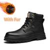 Fashion Genuine Leather Ankle Boots Man Round Toe Style Outdoor Motorcycle Boots Warm Plush Fur Winter Boots for Men Comfy Walking Shoes