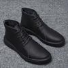Fashion Korean Luxury Genuine Leather Lace Up Mid Top Boots Men Chelsea Boots Motorcycle Outdoor Cow Sole Shoes British Work Shoes Male