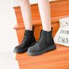 Fashion Women Ankle Boots Platform Leather Boots Side Lace-up Round Toe Winter Ladies Warm Shoes Retro Motorcycle Botas Mujer