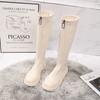 Fashion Leather Ladies Boots Footwear Shoes for Women Long Round Toe Elegant with Low Heels Biker Winter Knee High Shaft Boot Hot Y2k Pu