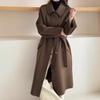 Baby Doll Collar Single-breasted Double-sided Wool Coat for Women Long Plate Buttoned Off Shoulder Sleeves Double-sided Cashmere Plus