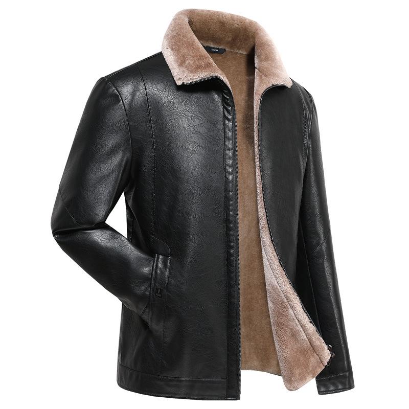 Autumn New Style Washed PU Leather Jacket for Middle-aged Men with Velvet and Thickened Men's Fur All-in-one Jacket