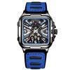 Luxury Square Transparent Skeleton Mens Watches Field Sports Rubber Band Mechanical Watch Luminous Waterproof Reloj Hombre 2024