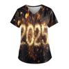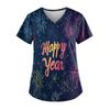 Women's Fashion New Year Printed Short Sleeve V-Neck Top Small Pocket Work T-Shirt — buy products online with free worldwide shipping!