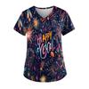 Women's Fashion New Year Printed Short Sleeve V-Neck Top Small Pocket Work T-Shirt