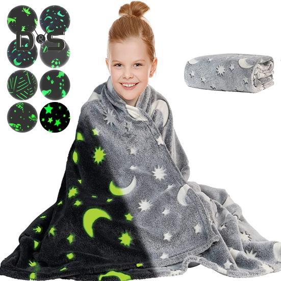Double Sided Flannel Luminous Blanket Star Moon Dinosaur Graphics Glow-in-the-Dark Blanket Thermal Blanket for Kids Bed Stroller Car or Couch — buy products online with free worldwide shipping!