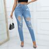 Ripped High Waist Slim Fit Washed Women's Denim Pants — buy online with free worldwide shipping!