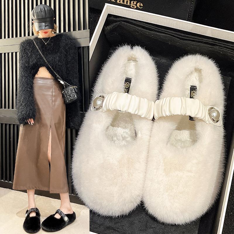 Fashion Half Tuo Mao Shoes for Women's Outwear 2024 Autumn/Winter New Baotou Lazy Home Warm Cotton Slippers — buy online with free worldwide shipping!