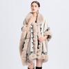 Women's Padded Thickened Faux Otter Hair Collar Cape Shawl Loose Large Size Knitted Cardigan Jacket
