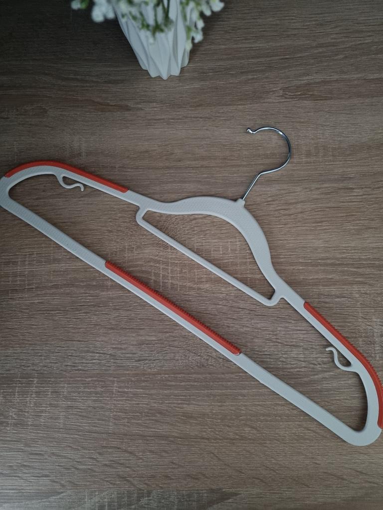 The non-slip clothes hanger is a great choice for neat storage of clothes. Thanks to special inserts, it prevents clothes from slipping, even from delicate fabrics such as silk or satin.👍 The ergonomic design provides a secure hold, preserving the shape of the clothes and preventing creases. The hanger is suitable for shirts, dresses, trousers and accessories such as scarves or belts. Lightweight, strong and durable, it will become an indispensable accessory in any wardrobe. The perfect way to keep things in order and prolong the life of your things!