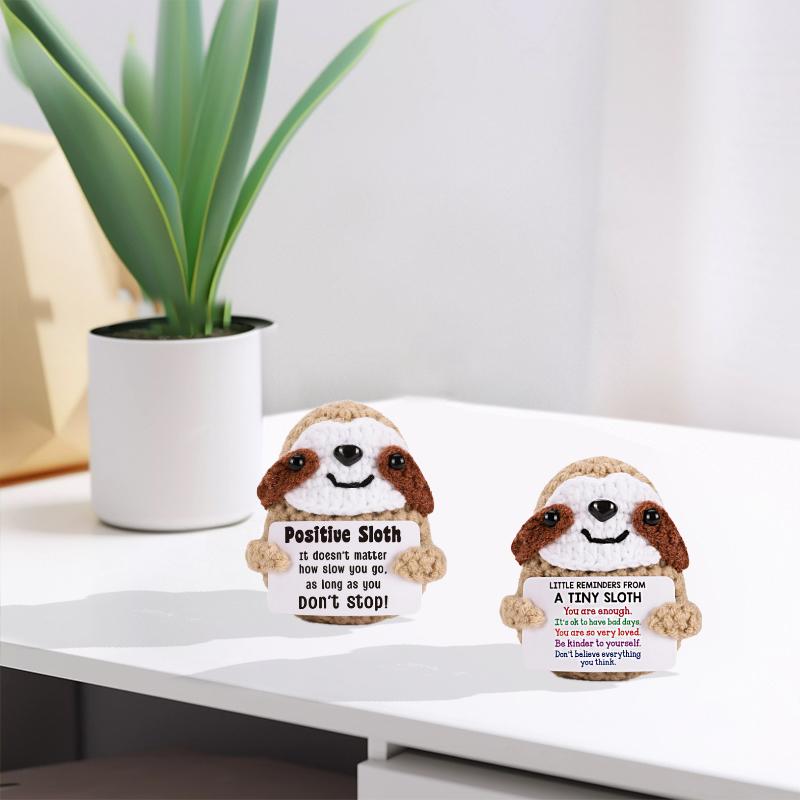 Funny Positive Sloth: A delightful companion that brings smiles and spreads positive vibes wherever you go! This adorable knitted sloth is more than just a plush doll. With its special positive card, it becomes a unique and creative way to uplift your friends