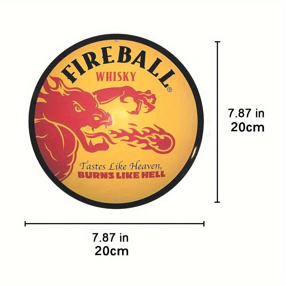 1pc, Fireball Whiskey Round Metal Sign, 20*20cm, Vintage Style, UV HD Printing, Aluminum, Indoor and Outdoor Decoration — buy online with free worldwide shipping!