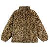 Autumn Winter Slimming Mid Length Jacket Top Leopard Print Jacket Women's Stand Collar Warm Parkas Outwear Female Loose Faux Fur Coats