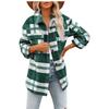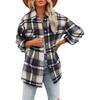 Spring and Autumn Women's Brushed Plaid Shirts Long Sleeve Flannel Lapel Button Down Pocketed Shacket Flannel Jacket Coats — buy online with free worldwide shipping!