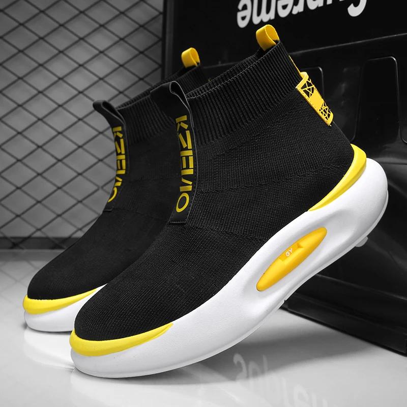 2025 Spring New Mens Casual Shoes Fashion High Elastic Socks Male Sneakers Comfortable Breathable Solid Color High-top Man Shoes — buy online with free worldwide shipping!