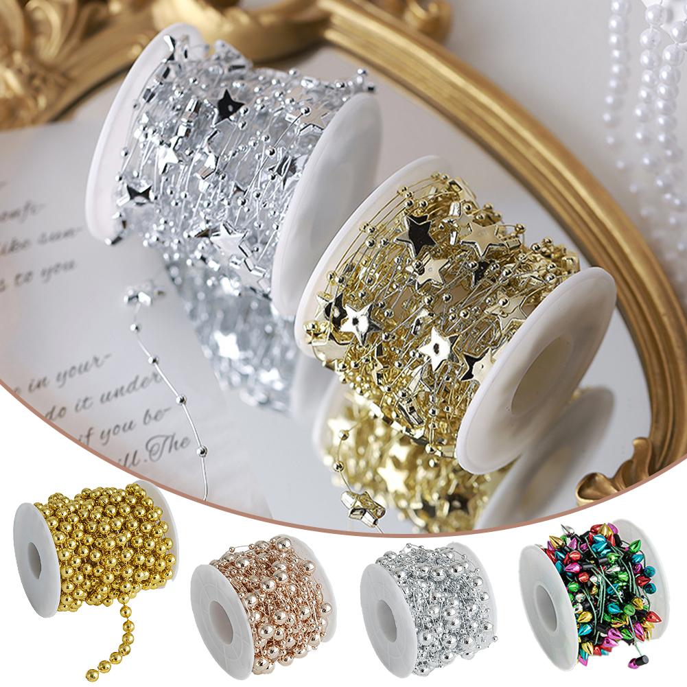 5M/10M Christmas Tree Pearl String Imitation Pearl Beads Chain Metallic Gold Bead Wire Trim for DIY Garland Wedding Party Decor