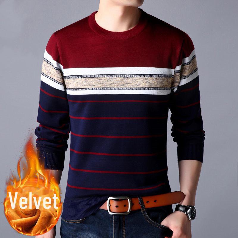 Men's Thermal Knitted Sweater - Plus Velvet, Round Neck, Thick Autumn/Winter Wear