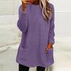 Autumn And Winter Women's Solid Color Round Collar Casual Loose Long Sleeve Pocket Plush Sweatshirt Women