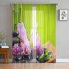 Zen Stones Orchids Flower Green Bamboo Tulle Curtains for Living Room Bedroom Decor Transparent Sheer Voile Window Curtain