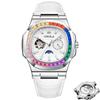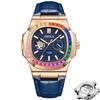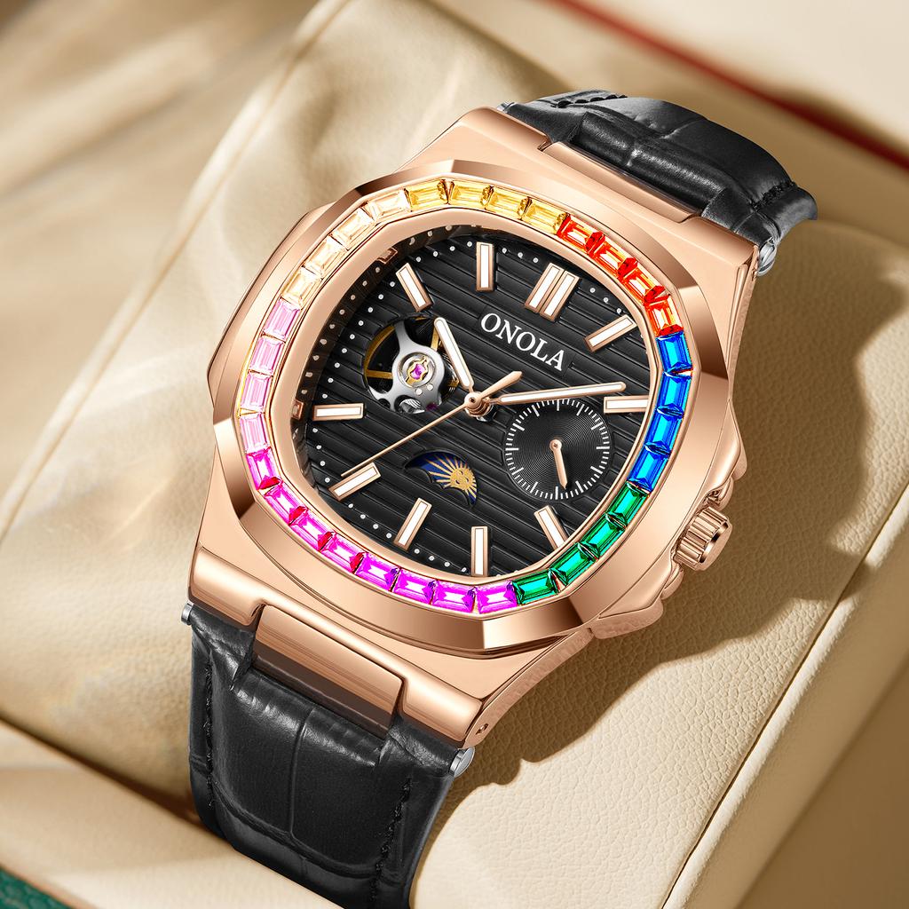 Tourbillon Hollowed Out Fully Automatic Mechanical Watch Men's Diamond Studded Moon Phase Dial Waterproof Luminous Watch Holiday Gift Watch