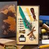 Luxury Fountain Pen Set Vintage Sprinkling Gold Feather Pens Ink Bottle Calligraphy Writing Dip Pen-s Birthday Gift 5 Nib Quill