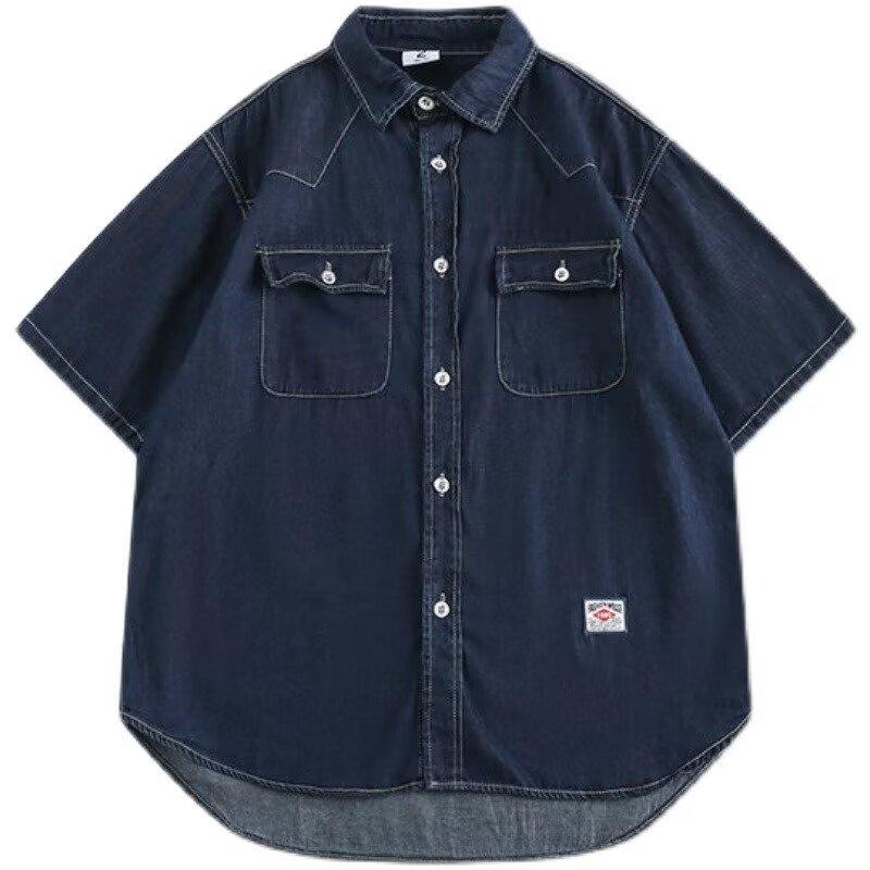 Japanese Retro Fashion Brand Summer Loose Denim Short Sleeved Shirt Artistic Youth Workwear Shirt Men'S And Women'S Layered Jacket